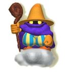 Black Magician possesses average speed and good control. His vehicle, MagiCloud MK-1, allows him to float, giving him no real weaknesses. The best way to defeat the Black Magician is to use a character that has good controls to handle the course's sharp turns. Using Haste Stones off the course's jump can give a significant boost as well. Goblin is best for this because the player's stones won't be stolen while using him. Black Magician will naturally hold onto attack stones until he gets a third, much like Golem and Goblin. He is dangerous if left alone because he can go nuts with the level 3 attacks, so at the start of the race, it is best to grab the ? stone in the middle so he doesn't get a stone.