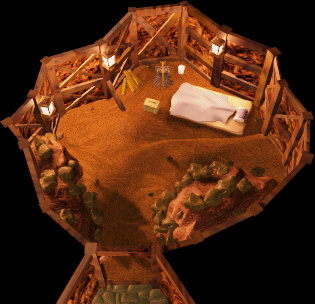 The Desert Prison[1] is the sixteenth chapter in Final Fantasy VII, and the seventh chapter of the second act, "Pursuit". After seeing several bodies at the Gold Saucer, shot by a man with a gun-arm, Cloud Strife and companions fear that Barret Wallace is the perpetrator. Dio blames Cloud, Tifa Lockhart, Aerith Gainsborough, Red XIII, and Cait Sith for the massacre, who are subsequently tossed into Corel Prison below, where they must find Barret and learn more. To win their freedom, they are forced to confront the boss of the prison, Dyne.