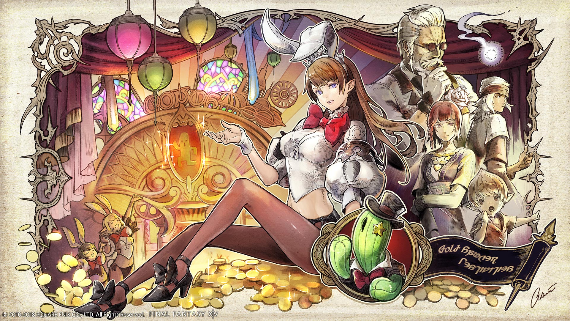 A patron recently come from the Gold Saucer claims it to be haunted. What brave soul will help Godbert Manderville rid his gilded halls of this phantom menace?