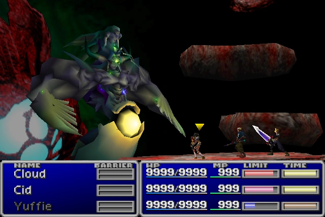 After Jenova is defeated, the party heads forward for a very short dialogue sequence where Sephiroth is encountered. A number of conditions determine if the battle is multi-party; if a second or third party are used, the player should equip them with their ultimate weapons and curative spells at minimum, as well as offensive spells and some capability for ranged attacks.
