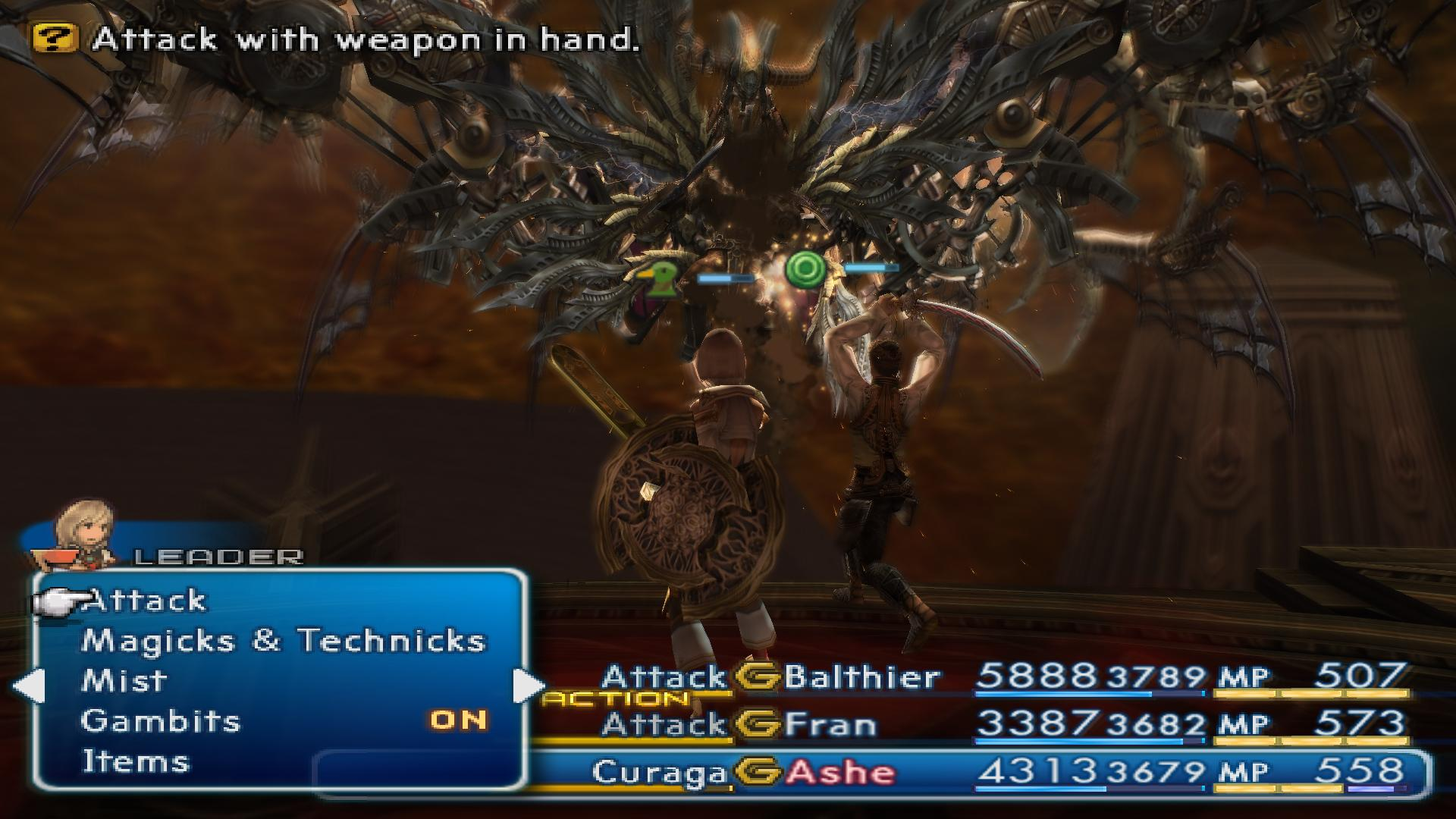 The final boss theme is "Struggle for Freedom". It features a medley of the other boss themes, as well as a continuous riff of "The Archadian Empire" and the main theme of Final Fantasy XII, representing the two motifs struggling against each other. The theme was composed by Hitoshi Sakimoto.