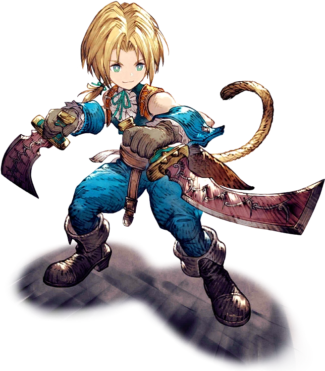 Zidane is a Thief and a member of Tantalus Theater Troupe, a secretive band of thieves. The Tantalus members Blank, Marcus, and Cinna are temporarily playable thieves who also have the Steal command. Zidane wields thief swords and daggers and learns passive abilities to boost his Steal ability. His Thievery deals more damage the more successful steals the player has performed.