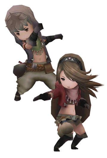 The Thief appears as a job obtained after defeating Jackal in Bravely Default and Bravely Second. It is a fast physical melee job that excels in Agility and Dexterity and uses daggers and bows. The job also appears in Bravely Default: Fairy's Effect.