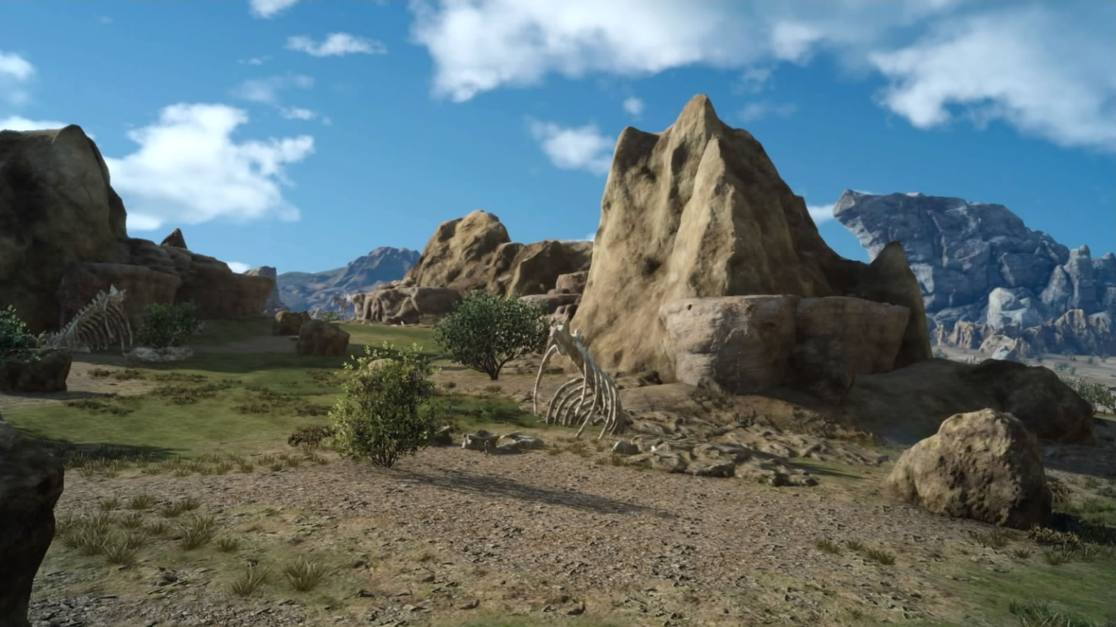 The Three Valleys is a location in the middle of Leide in Final Fantasy XV. It is an arid area that has animal skeletons and the weather commonly changes to a sandstorm while here. It has remains of ruined buildings and infrastructure around, but at the time of the game the area is abandoned and populated by wildlife. The player can explore it to find treasures, procurement points and mineral deposits. The party meets David Auburnbrie in an abandoned building in the area in Chapter 1, which in post-game hosts a new recipe for Ignis.