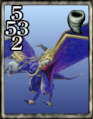 Being a Level 2 card, the card values on the Thrustaevis are not strong. Its value placement may be useful for games that use Same and/or Plus. It is a wind-elemental card and may be the first card with the wind element the player comes across. The element is used for when Elemental is in play. The player is likely to encounter the Elemental the first time halfway through the game when they get to Fishermans Horizon, though it is also a rule in Dollet and the Queen of Cards can be paid money to introduce new rules to a region. Placing the Thrustaevis on a tile with the matching tornado symbol boosts its vales by +1. The boosted values are not counted towards Same/Plus triggering, but do count towards Combo mechanics.