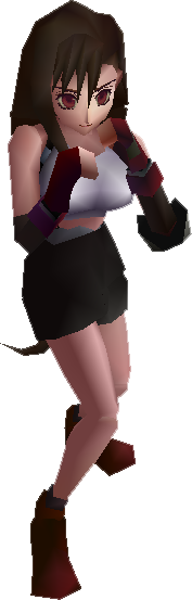 A member of the anti-Shinra militant group Avalanche. Tifa manages Seventh Heaven, a bar located in the Sector 7 slums. A student of Zangan-style martial arts, she can clobber opponents with her fleet-footed combat techniques.