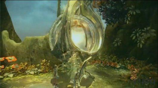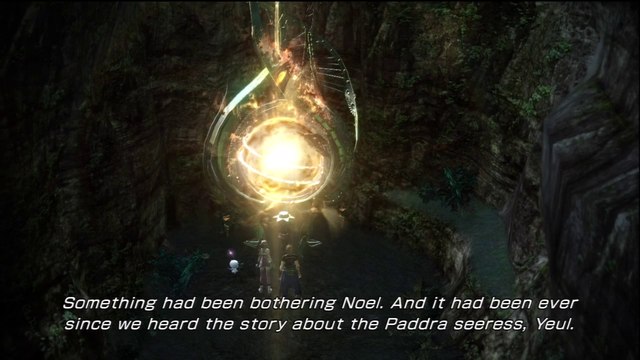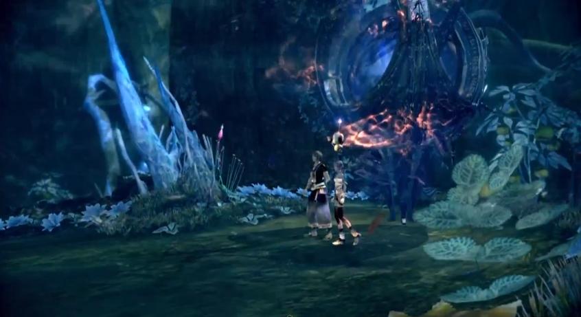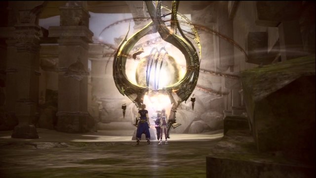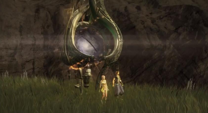 Noel and Serah enter the gate. Notice the writing in Etro's Script.