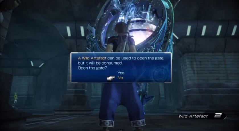 A Time Gate (時の扉, Toki no Tobira?), more commonly called a gate (ゲート, gēto?), is a gameplay and story element from Final Fantasy XIII-2. The Time Gates are connected via the Historia Crux and by stepping into a Time Gate, one can travel through time to a specific location. In order to activate a Time Gate, one must possess the necessary artefact. Some require a specific artefact, while others can only be activated using a Wild Artefact, which is consumed when used. Time Gates can be closed with Gate Seals.