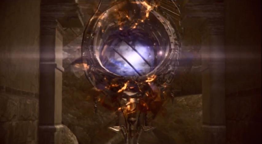In a fragment entry for Chaos Crystal, it is said that Chaos Crystal is a shard of twisted time, frozen in crystal formed by spacetime singularities, and is believed to be the seed substance that causes Time Gates to manifest. Only those for whom a Time Gate is intended may pass through it, otherwise, they will be blocked upon approach. It is said that only those with an affinity for chaos may make use of the Time Gates. When a Time Gate is activated, writing in Etro Script circles the gate in a sequence of repeating letters, however, it doesn't spell out anything intelligible, merely a sequence saying: "MLFMHBPEC".