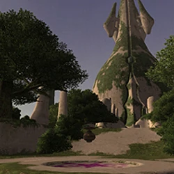 Ru'Aun Gardens is a pentagonal array of floating islands that forms the exterior of Tu'Lia. It is accessed primarily from a teleporter in the Hall of the Gods, the dilapidated temple of Altana that hides in the forests of northern Mindartia. A mechanism also exists to transport registered warriors between Ru'Aun and the Halls of Transference within the crags at Konschtat Highlands, La Theine Plateau, and Tahrongi Canyon.