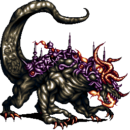 The sprite that is shared between Ultima Buster, Omega Weapon, and Ultima Weapon was used and modified for some of the Icedrake class dragons in Bahamut Lagoon, namely the Saint Weapon and Black Buster.