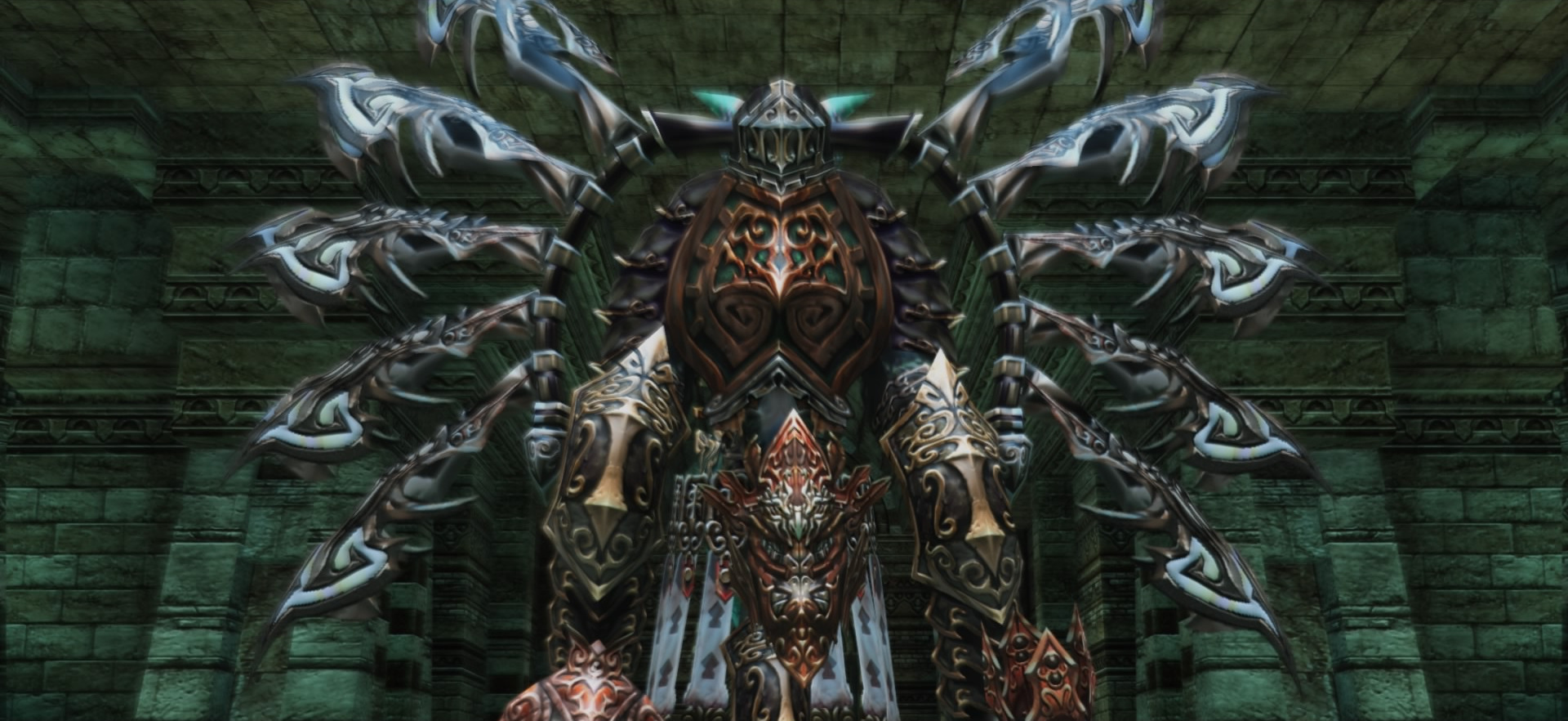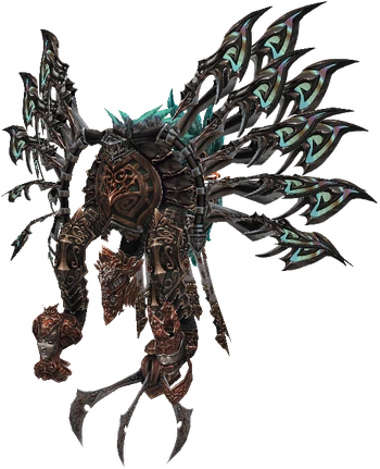 Vinuskar is found in the Ward of Steel. There are three pits from which fire is spewed; Vinuskar will clamber up from the farthest pit. An immense gravitational field surrounds it; all metal weaponry and equipment is hideously slowed, and even spells take longer to cast. If the party equips any swords, hammers, axes, and the like, they could take three times as long to dish out a single attack. Guns and bows are unaffected.
