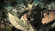 The Radiant Host had organized an arena for the battle with Virazahn at the mountain pass towards Khadga. Tepeke had spread rumors about the location of the battle, and as predicted, Virazahn appeared. After a speech, Virazahn drew his bow. The Warrior of Light and Tepeke destroyed Virazahn's armor and defeated him. Virazahn tried to flee, only to be knocked down by a stone falling from the sky. The Radiant Host soon arrived to take Virazahn prisoner, and Tepeke recovered the relic stolen from her village.[6]