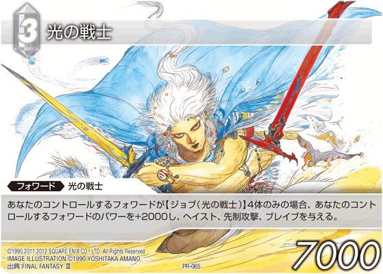 Warrior of Light returns in the prequel to Dissidia along with the other Warriors of Cosmos whose membership during the previous 12th cycle included Kain Highwind, Tifa Lockhart, Laguna, Yuna, Vaan, and Lightning before the six sacrificed themselves to ensure their allies' survival in the next cycle.
