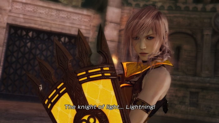 Lightning is called the "the knight of light", a synonym for "the warrior of light" by Zoe in the Yusnaan Slaughterhouse before the fight begins. Lightning has been chosen as the savior of souls by the god Bhunivelze.