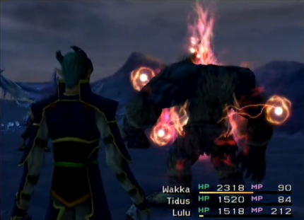 Wendigo has high HP and Strength, and the Guado Guardians will repeatedly use Eye Drops and cast Berserk on it, meaning a single attack from it is likely to KO any party member. Once Wendigo's HP falls past 9,000, it will raise its arms and counter any physical attack, except from aeons. It will not attack during its turn, and will lower its arms on its third turn since raising them. On its fourth turn since lowering them, it will raise its arms again. Any turns while afflicted with Provoke or Sleep will not count.