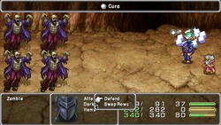 9 | Restores moderate HP to one, or minor HP to all allies. Can also damage undead. | Rydia (2D): (Dummied) Rydia (3D): LV 12 Rosa (2D): LV 13 Rosa (3D): Known Cecil: LV 15 Porom: LV 13 |
