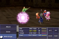 White Magic (しろまほう, Shiro Mahō?), also called White, is an ability in Final Fantasy IV used by Paladin Cecil, Rosa, Porom, child Rydia, Tellah, and Fusoya. White Magic is the counterpart to Black Magic, which focuses on harming opponents. White Magic contains healing spells, status-altering spells, a spell to escape battles/dungeons, and one damaging spell. The White Magic command's charge time varies, depending on the spell the player selects to cast. Fusoya knows all White Magic spells, while Tellah eventually learns all of them bar Holy via a story event.