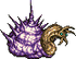 Only one of the two parts needs to be defeated. The head is the easier part to kill, but every ten seconds it hides in the shell and becomes immune to damage until it reappears. The head attacks with a physical attack and Slime, which inflicts slow on a character. Attacking the shell prompts it to counter with Megavolt, which will take a large chunk of HP from the party. While it is possible to destroy the shell, it will take a long time to destroy it due to its massive HP. Ymir can use Megavolt six times before it runs out of MP.