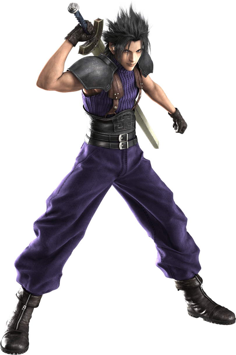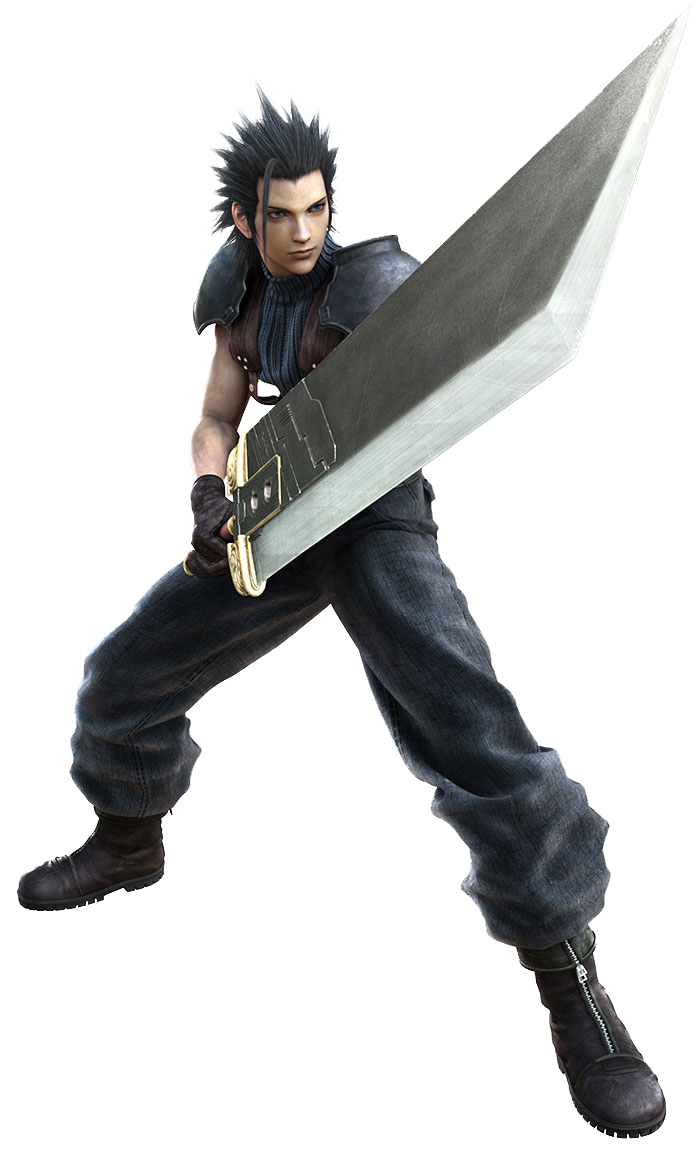 Zack is the sole playable character in Crisis Core -Final Fantasy VII-. He uses various materia and has mastered Materia Fusion. As a member of SOLDIER, he wields a large sword.