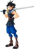 Zack appears as a playable character and is the main representative of Crisis Core: Final Fantasy VII. He can be available from the start by transferring save data from the second demo. If the player did not select him among their party of four or download the demo, he can later be unlocked by collecting Red Crystal Shards.